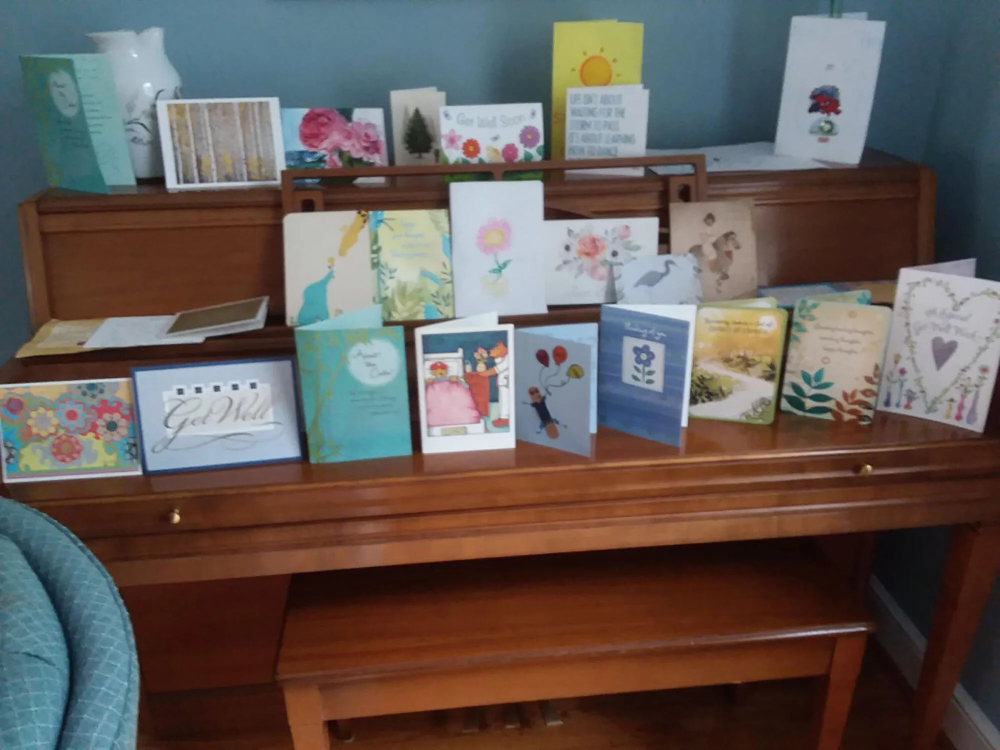 Some of the many cards friends sent offering support. Photo: Virginia Thompson